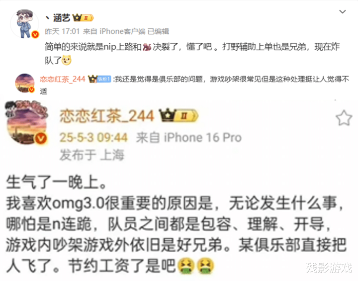 对于这个爆料,说实话,残影觉得大家听一半就好。毕竟在Doinb复出之前,山鸡就和他关系不错,还去过大B庄园直播过,甚至在Doinb加盟NIP这件事上,山鸡也有在从中出力。Doinb本身就决定只打完这个赛季就撤,就算是成绩不佳,也不至于再出“决裂”这种丑闻,毕竟这只会加深他身上的决裂buff,对他的风评产生影响。不过恋恋红茶的爆料,残影倒是觉得更为合理一些。